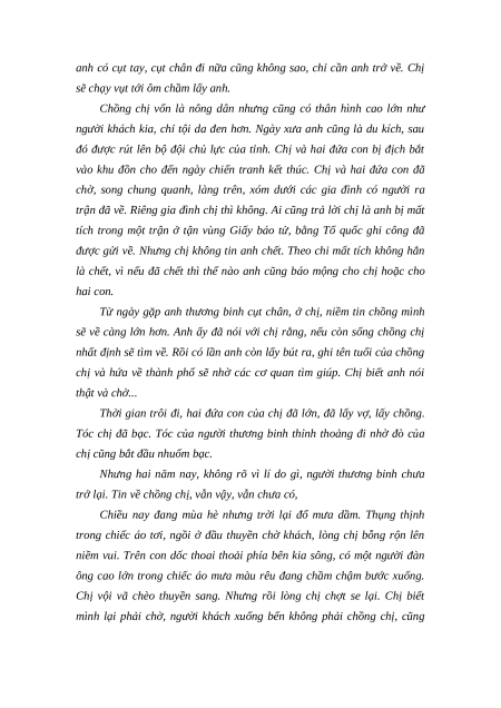 chị và hứa về thành phố sẽ nhờ các cơ quan tìm giúp. Chị biết anh nói thật và chờ...