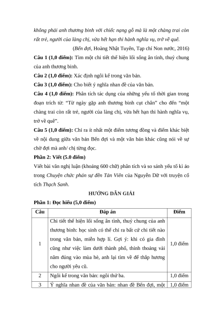 - Những yếu tố thời gian: từ ngày gặp anh thương binh 4 1,0 điểm