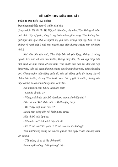 Phần 1: Đọc hiểu (5,0 điểm) Câu Đáp án Điểm