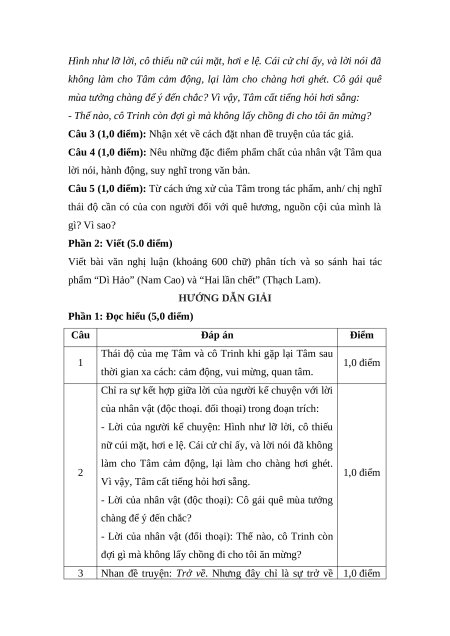 phẩm “Dì Hảo” (Nam Cao) và “Hai lần chết” (Thạch Lam). HƯỚNG DẪN GIẢI
