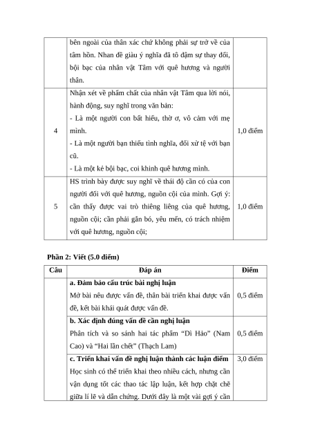 Câu 4 (1,0 điểm): Nêu những đặc điểm phẩm chất của nhân vật Tâm qua