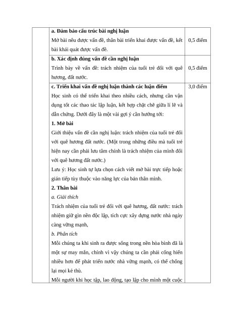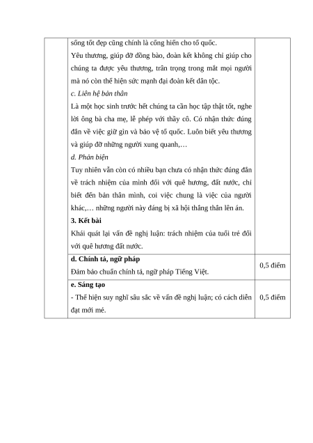 Trình bày về vấn đề: trách nhiệm của tuổi trẻ đối với quê 0,5 điểm hương, đất nước.
