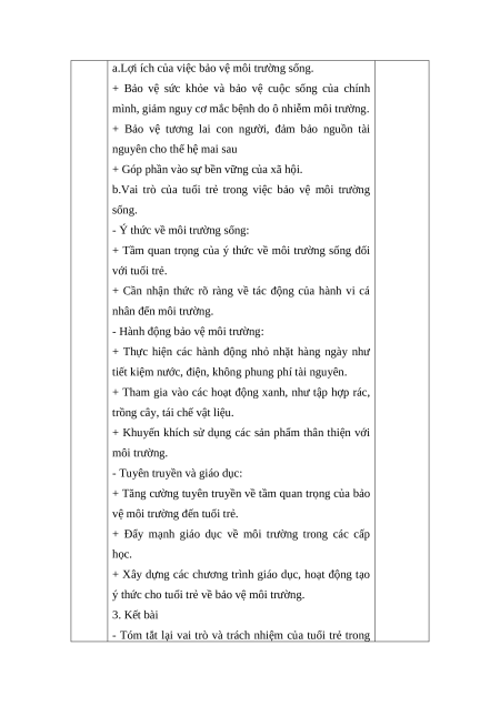 ý thức cho tuổi trẻ về bảo vệ môi trường. 3. Kết bài