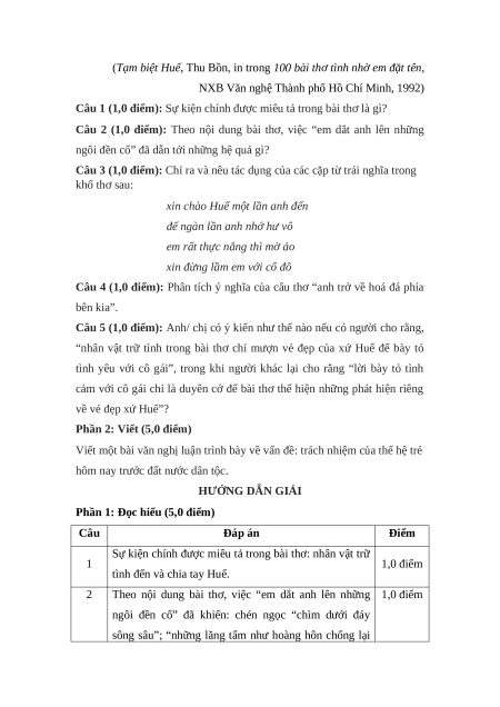 nghĩa khác nhau của bài thơ; tác phẩm vừa thuộc về 5 1,0 điểm