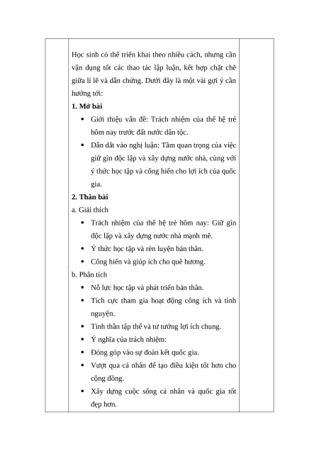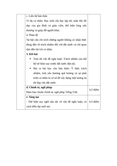 Trình bày về vấn đề: trách nhiệm của thế hệ trẻ hôm 0,5 điểm
