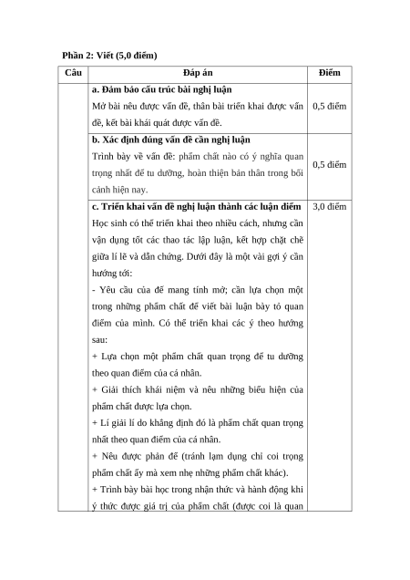 Phần 2: Viết (5,0 điểm) Câu Đáp án Điểm