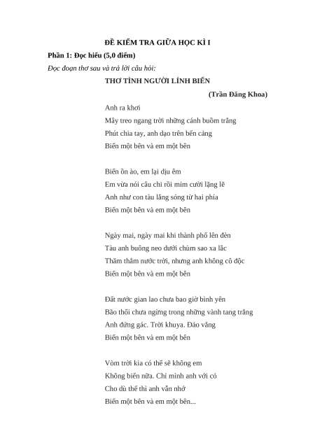 Đề thi giữa kì 1 Ngữ văn 12 Kết nối tri thức (Đề 1)