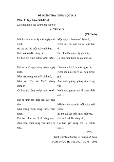 Đề thi giữa kì 1 Ngữ văn 12 Kết nối tri thức (Đề 2)
