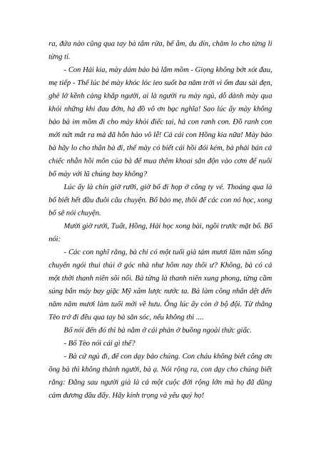 - Con Hải kia, mày dám bảo bà lắm mồm - Giọng không bớt xót đau,