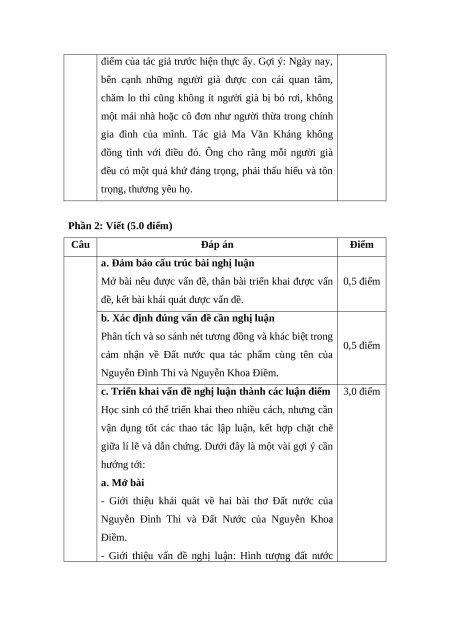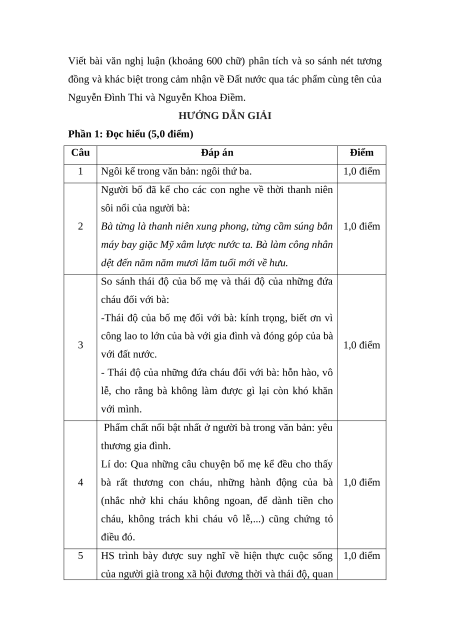 Phần 1: Đọc hiểu (5,0 điểm) Câu Đáp án Điểm 1