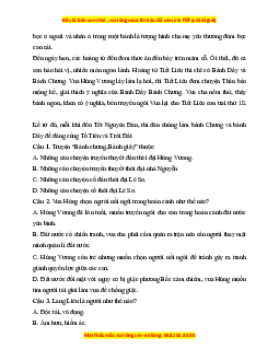 Câu 8. Truyền thuyết “Bánh chưng, Bánh giầy” nhân vật nào là nhân vật chính? A. Vua Hùng