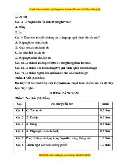 Câu 1 C. Thơ tự do 0,5 điểm Câu 2 D. Da thịt 0,5 điểm Câu 3 A. Đúng 0,5 điểm