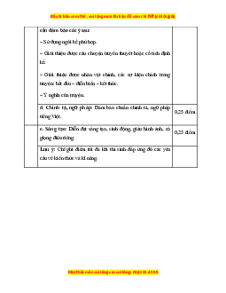 d. Chính tả, ngữ pháp: Đảm bảo chuẩn chính tả, ngữ pháp 0,25 điểm tiếng Việt.