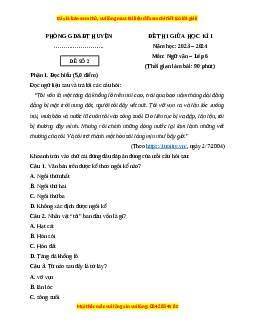 Môn: Ngữ văn – Lớp 6 ĐỀ SỐ 2