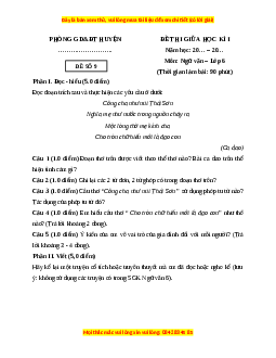 - Đoạn thơ trên được viết theo thể thơ lục bát Câu 1 1,0 điểm