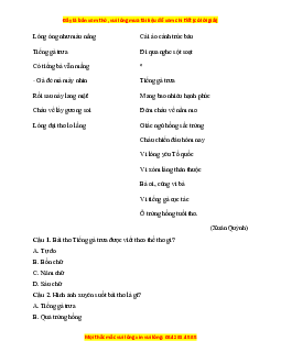 Câu 1. Bài thơ Tiếng gà trưa được viết theo thể thơ gì? A. Tự do B. Bốn chữ C. Năm chữ D. Sáu chữ