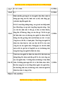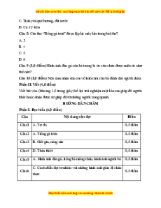 Lưu ý: Chỉ ghi điểm tối đa khi thí sinh đáp ứng đủ các yêu