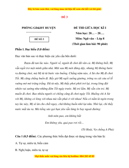 Đề thi giữa kì 1 Ngữ văn 8 Cánh diều (đề 3)
