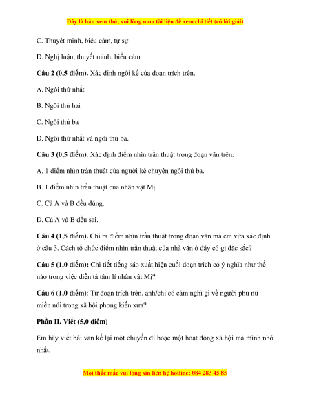 Câu 2 (0,5 điểm). Xác định ngôi kể của đoạn trích trên. A. Ngôi thứ nhất B. Ngôi thứ hai C. Ngôi thứ ba