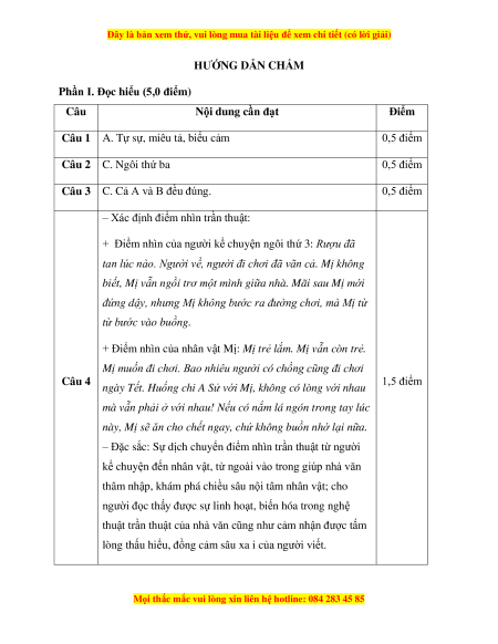 Câu 4 (1,5 điểm). Chỉ ra điểm nhìn trần thuật trong đoạn văn mà em vừa xác định