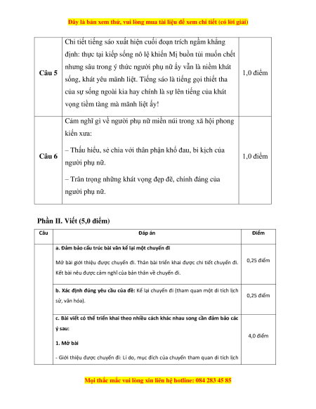 Phần II. Viết (5,0 điểm) Câu Đáp án Điểm