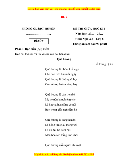 Môn: Ngữ văn – Lớp 8 ĐỀ SỐ 9