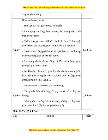 + Tác giả thể hiện tấm lòng yêu quý, tự hào về vẻ đẹp quê Câu 8 hương. 0,5 điểm