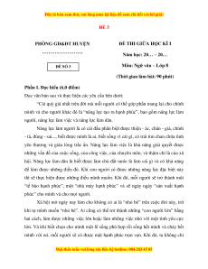 Năm học: 20… – 20… ĐỀ SỐ 3