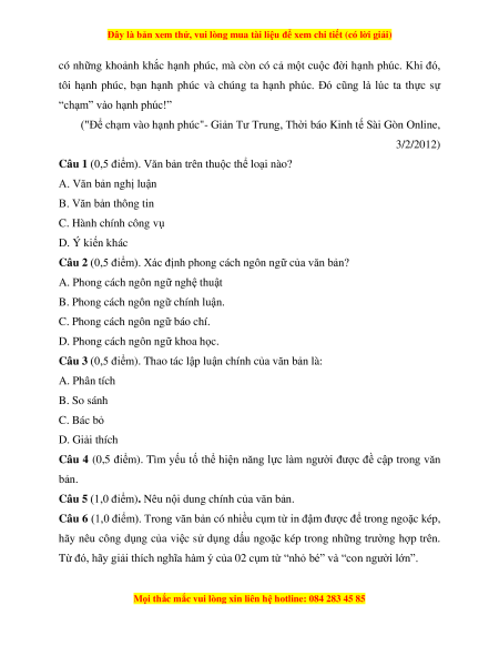 Đây là bản xem thử, vui lòng mua tài liệu để xem chi tiết (có lời giải)