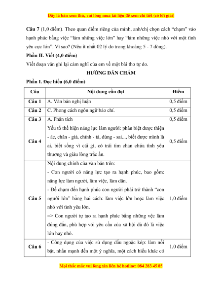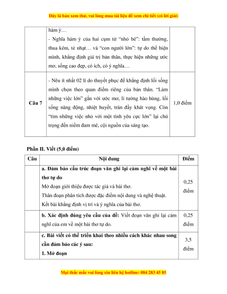 Viết đoạn văn ghi lại cảm nghĩ của em về một bài thơ tự do. HƯỚNG DẪN CHẤM