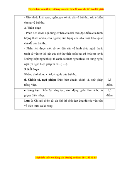Lưu ý: Chỉ ghi điểm tối đa khi thí sinh đáp ứng đủ các yêu cầu