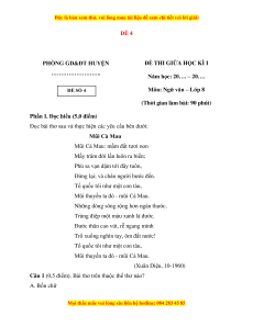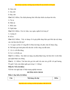 Câu 2 (0,5 điểm). Xác định phương thức biểu đạt chính của đoạn thơ trên. A. Tự sự B. Miêu tả C. Biểu cảm D. Nghị luận