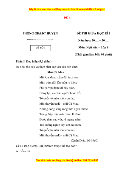 Đọc bài thơ sau và thực hiện các yêu cầu bên dưới: Mũi Cà Mau