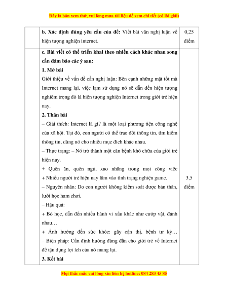 Viết bài văn nghị luận về hiện tượng nghiện internet. HƯỚNG DẪN CHẤM