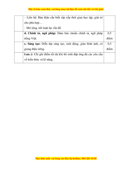 Lưu ý: Chỉ ghi điểm tối đa khi thí sinh đáp ứng đủ các yêu cầu