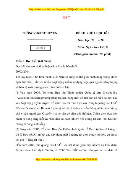 Môn: Ngữ văn – Lớp 8 SỐ 7