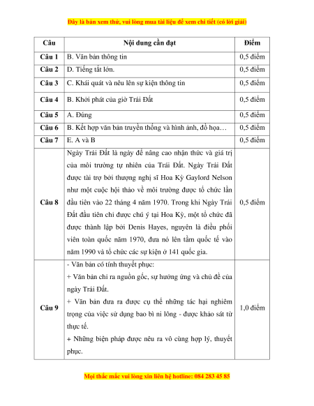 Câu 8 (0,5 điểm). Ngày Trái Đất được tổ chức hàng năm để bàn về vấn đề gì?