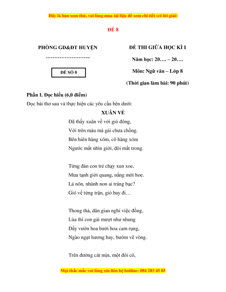 Môn: Ngữ văn – Lớp 8 SỐ 8