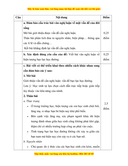 Viết bài văn nghị luận về hiện tượng bạo lực học đường. HƯỚNG DẪN CHẤM