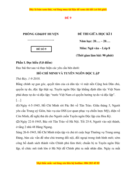 Môn: Ngữ văn – Lớp 8 SỐ 9