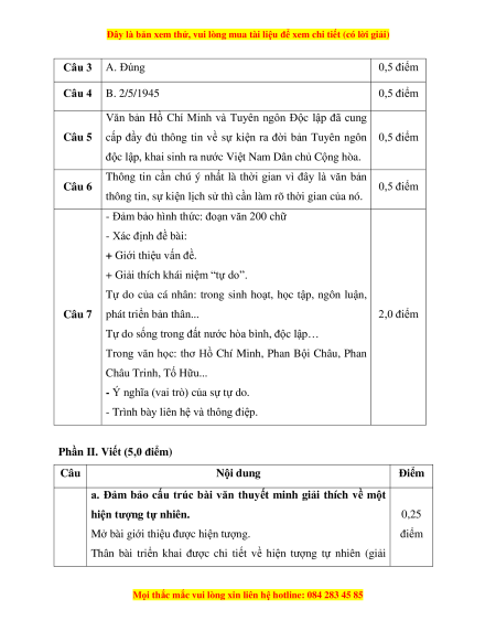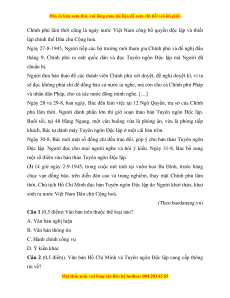 Câu 3 (0,5 điểm) Văn bản Hồ Chí Minh và Tuyên ngôn Độc lập đã cung cấp đầy