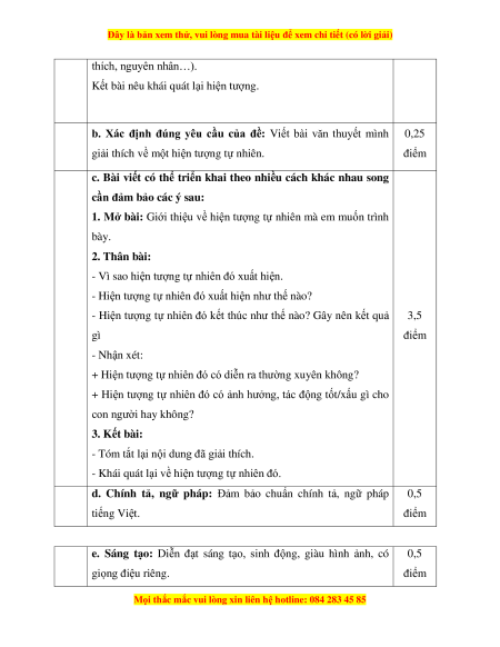Viết bài văn thuyết mình giải thích về một hiện tượng tự nhiên. HƯỚNG DẪN CHẤM