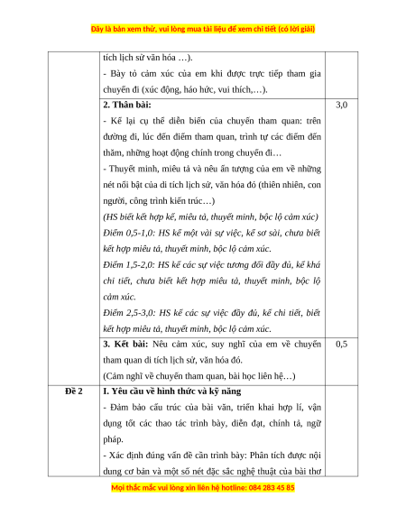 Đề 1. Viết bài văn kể lại chuyến tham quan một di tích lịch sử, văn hoá mà em ấn