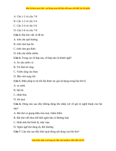 Câu 8. Những câu nào trong bài thơ có tiếng hiệp vần? A. Các câu 1-3-5-7-8 B. Các câu 4-5-6-7-8 C. Các câu 1-2-4-6-8 D. Các câu 1-2-3-4-5