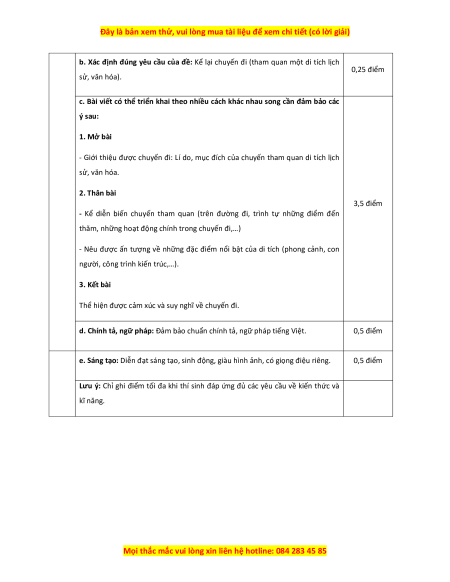 b. Xác định đúng yêu cầu của đề: Kể lại chuyến đi (tham quan một di tích lịch 0,25 điểm sử, văn hóa).