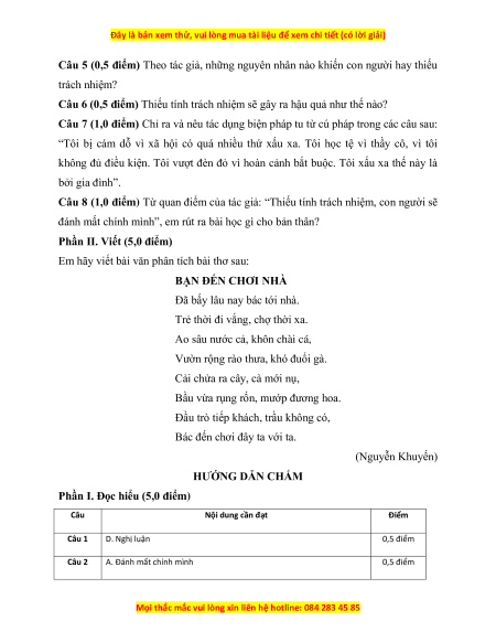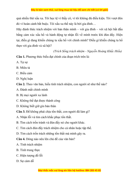 Câu 8 (1,0 điểm) Từ quan điểm của tác giả: “Thiếu tính trách nhiệm, con người sẽ