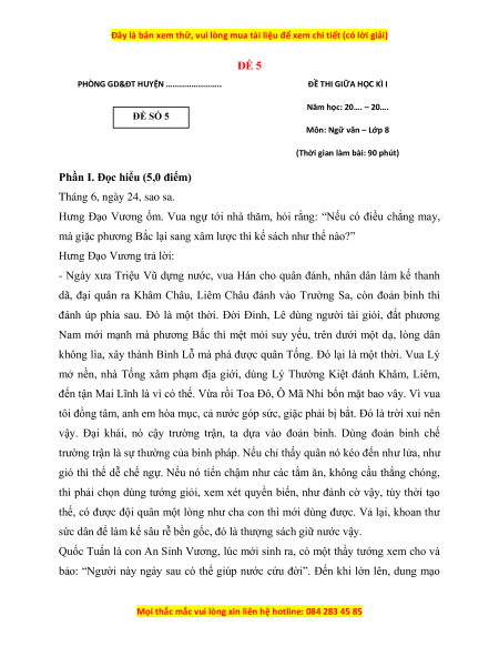 Phần I. Đọc hiểu (5,0 điểm) Tháng 6, ngày 24, sao sa.