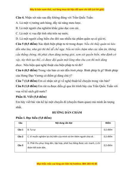 Câu 8 (1,0 điểm) Em rút ra được diều gì qua lời trình bày của Trần Quốc Tuấn với