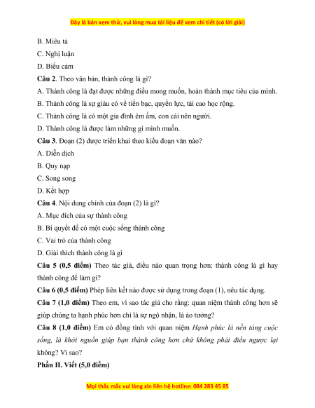 B. Bí quyết để có một cuộc sống thành công 0,5 điểm Câu 5