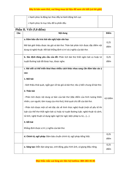 d. Chính tả, ngữ pháp: Đảm bảo chuẩn chính tả, ngữ pháp tiếng Việt. điểm 0,25